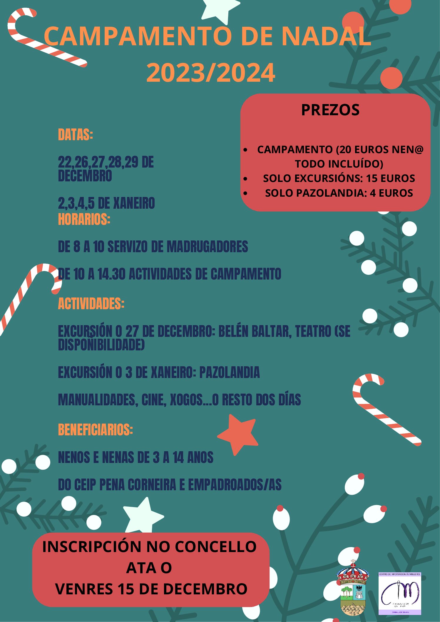 CIM - Centro De Información Á Muller, Novas 04 Dic 2023 CAMPAMENTO DE NADAL 2023 cartel campamentoINSCRIPCIONES NADAL Outro ano máis, concienciados da necesidade de Conciliación, das familias empadroadas en Carballeda de Avia ou usuarias… Info