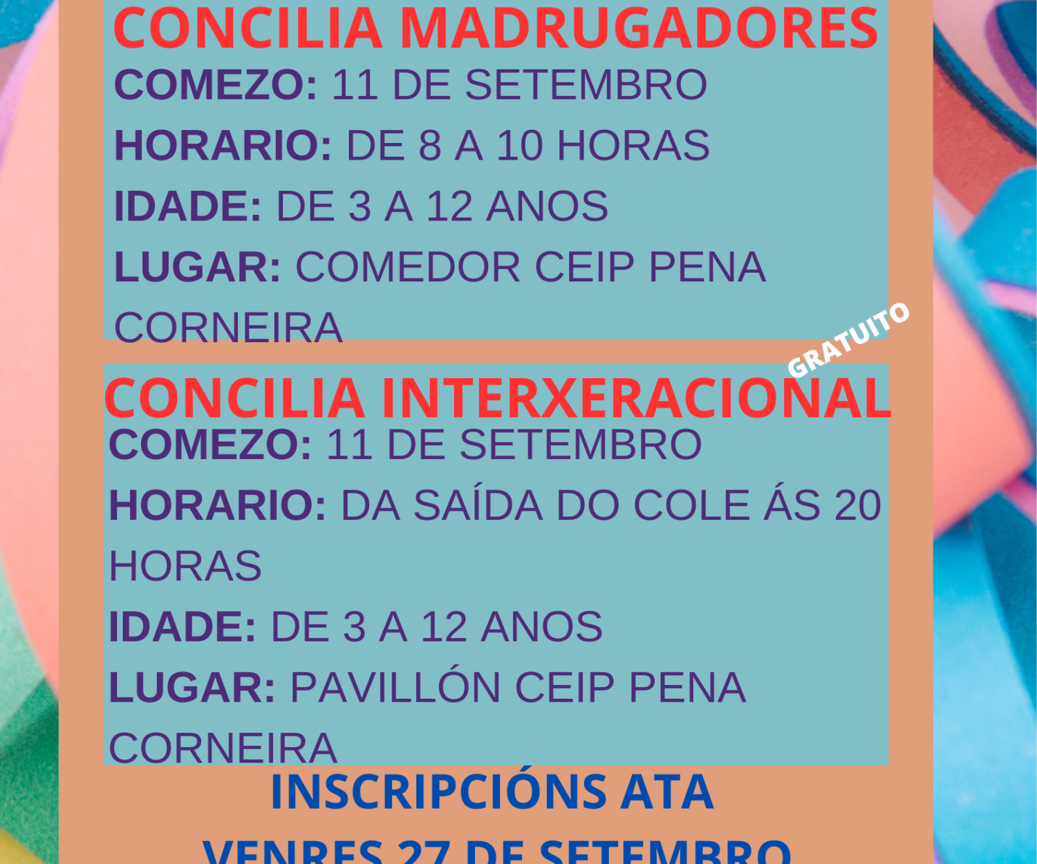 Anuncios, CIM - Centro De Información Á Muller, Novas, Servizos Sociais 05 Sep 2024 PROGRAMAS DE CONCILIACIÓN CURSO 2024/2025 Outro curso máis , conscientes da necesidade de conciliación das familias dos nenos e nenas do CEIP Pena Corneira, ofertamos… Info