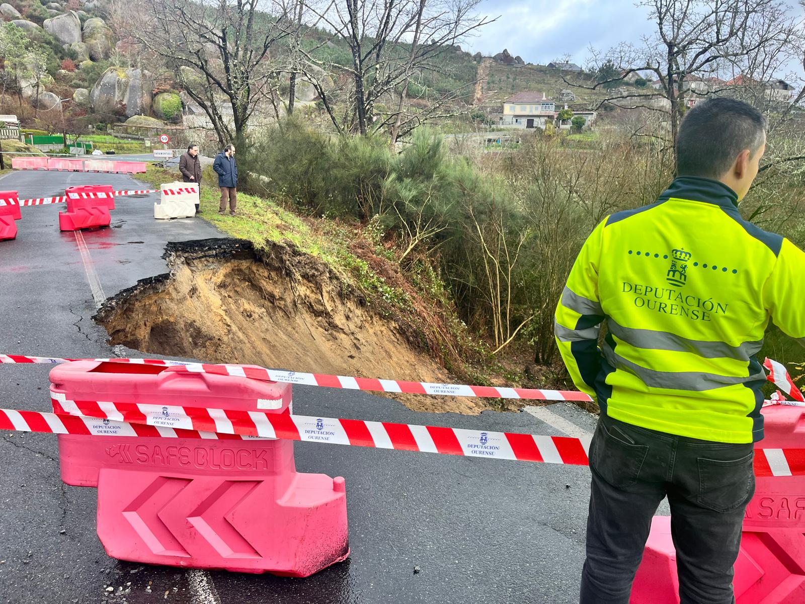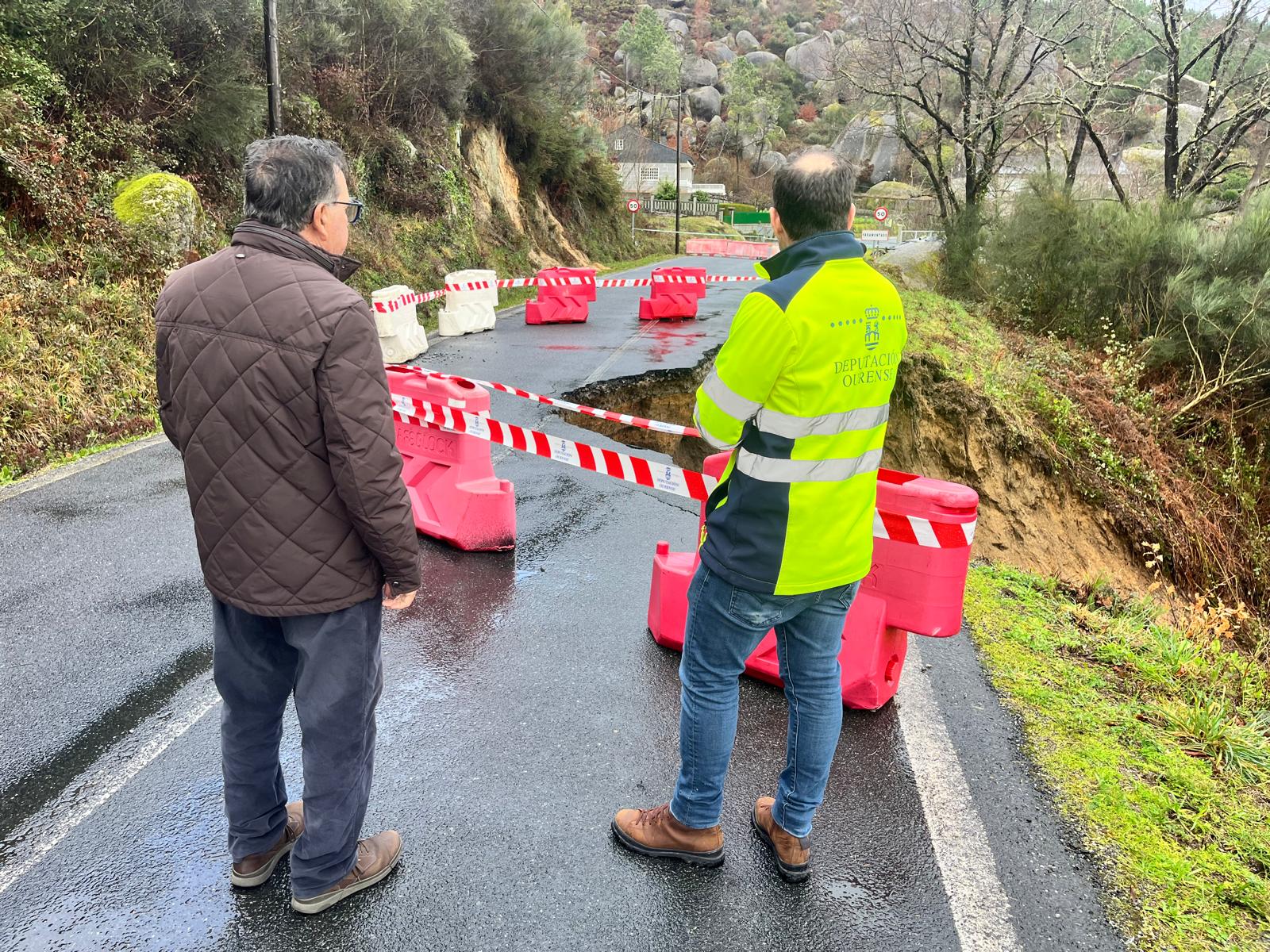 O alcalde comprobou a zona co Xefe de Conservación e Explotación do Servizo de Vías e Obras da Deputación de Ourense e co persoal técnico, para facer unha valoración inicial dos danos e organizar os traballos de reconstrucción neste punto, tamén se valoraron outras reparacións de taludes e bolsas de auga provocadas polas sucesivas borrascas. A reparación é complexa e aínda non se poden establecer plazos de finalización das tarefas, pero dende primeiro momento se está traballando para solucionalo.