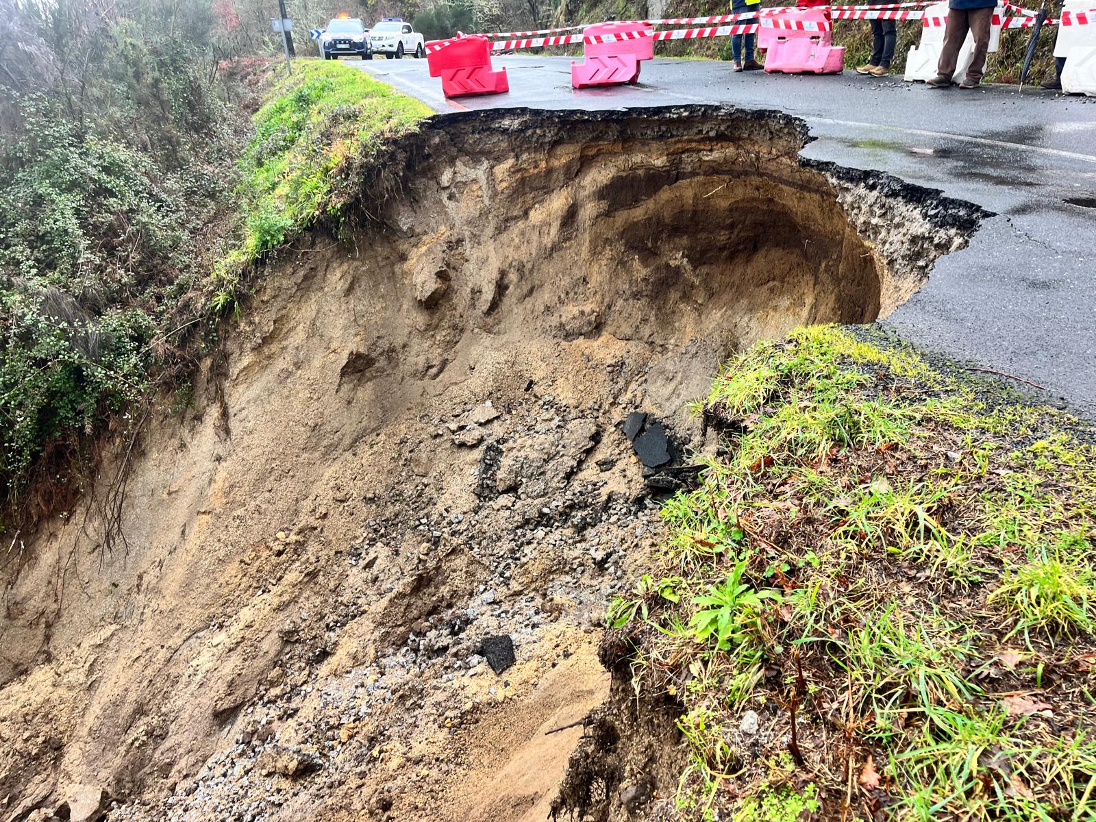 Chegados ao punto, comunicaron que o terreo no que se sustenta o poste e o firme da OU-0306 no kilómetro 9,3 en Faramontaos, estaba colapsando e esmorecéndose por un desnivel de uns 30 metros, e que a estrada estaba a piques de derrubarse por completo.