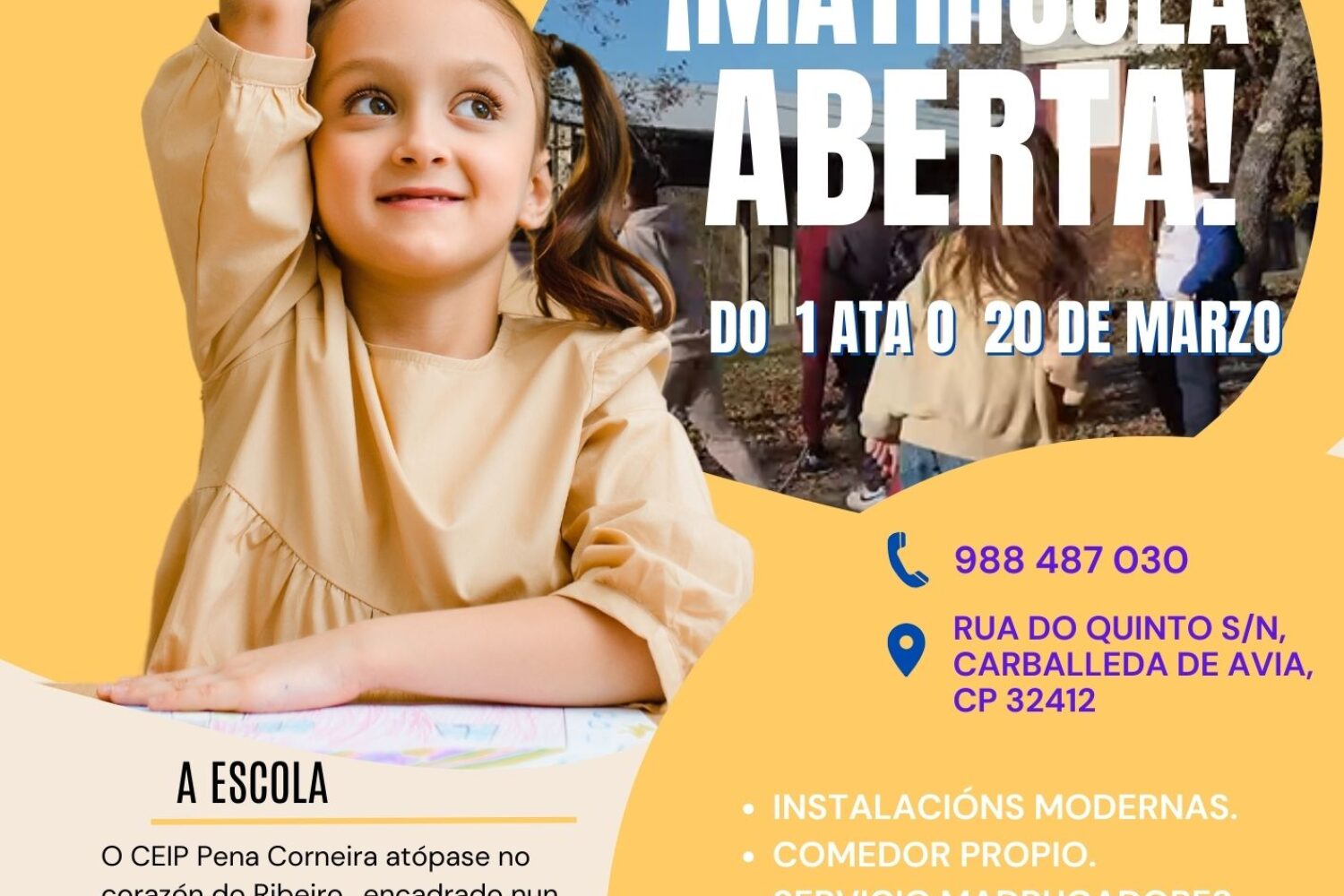 O próximo día 1 de marzo ábrese o prazo de matriculación no colexio CEIP Pena Corneira da nosa localidade.