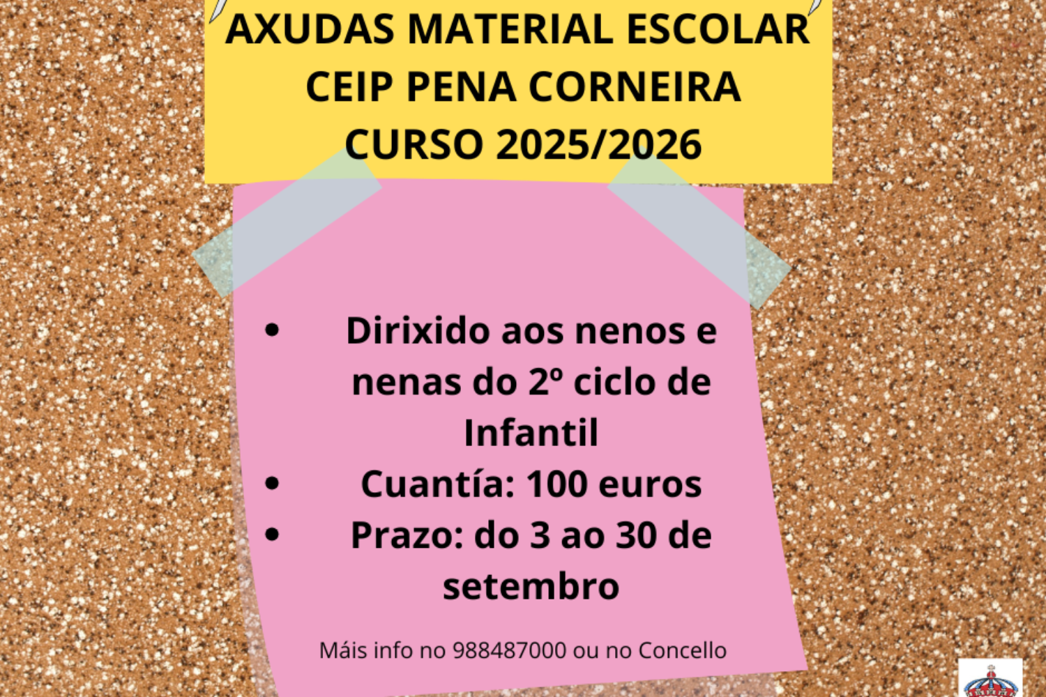 Dende o Concello de Carballeda de Avia, sendo conscientes do gasto que supón o novo curso escolar para todas as familias, volvemos ofertar axudas para adquisición de material didáctico e escolar para os nenos e nenas do CEIP de Pena Corneira, do 2º Ciclo de Infantil (cursos que quedan fóra das axudas ofertadas pola Xunta de Galicia).