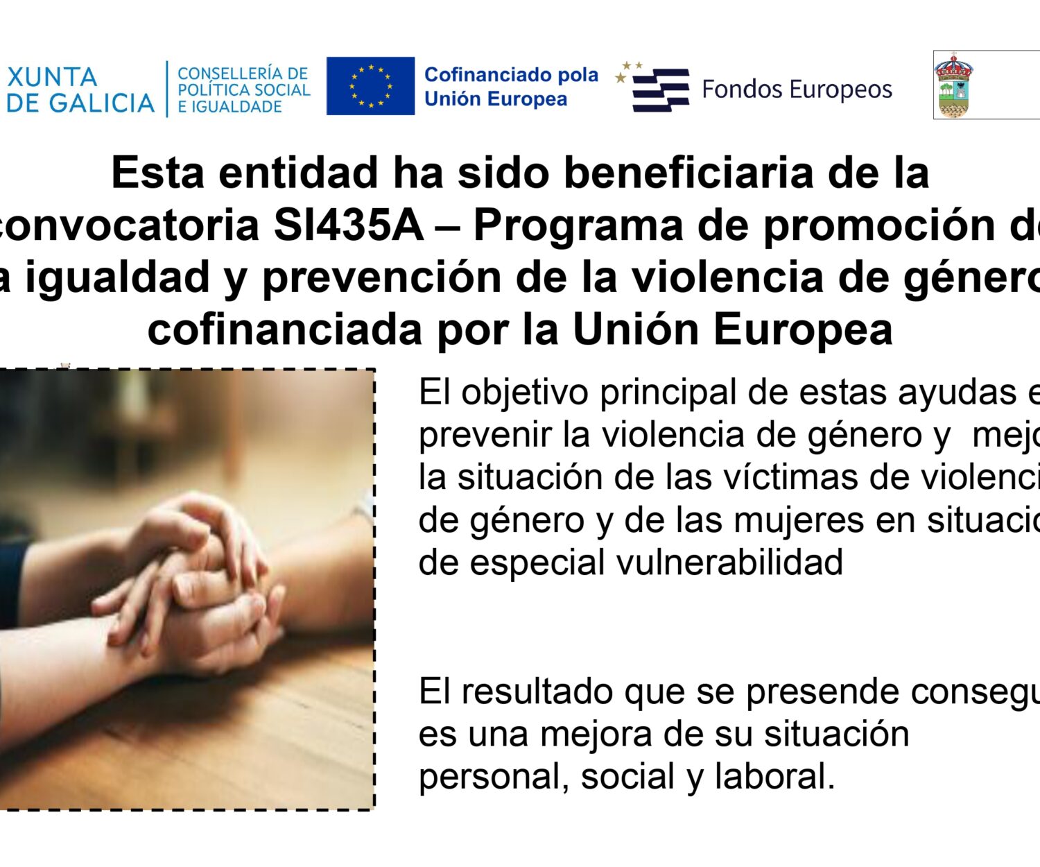 - Programa “Quéreme ben”, coloquios, actividades didácticas, e campañas de sensibilización dirixidas a informar e sensibilizar sobre a igualdade e a violencia de xénero, dende os máis pequenos, aos máis maiores.